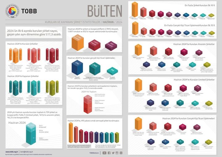 2024’ün ilk 6 ayında kurulan șirket sayısı, geçen yılın aynı dönemine göre %17,3 azaldı.