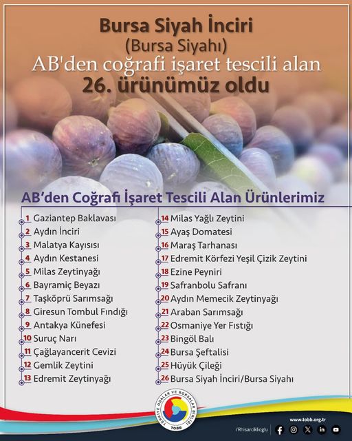 Avrupa Birliği’nden coğrafi işaret tescili alan 26. ürünümüz Bursa Siyah İnciri/Bursa Siyahı oldu.