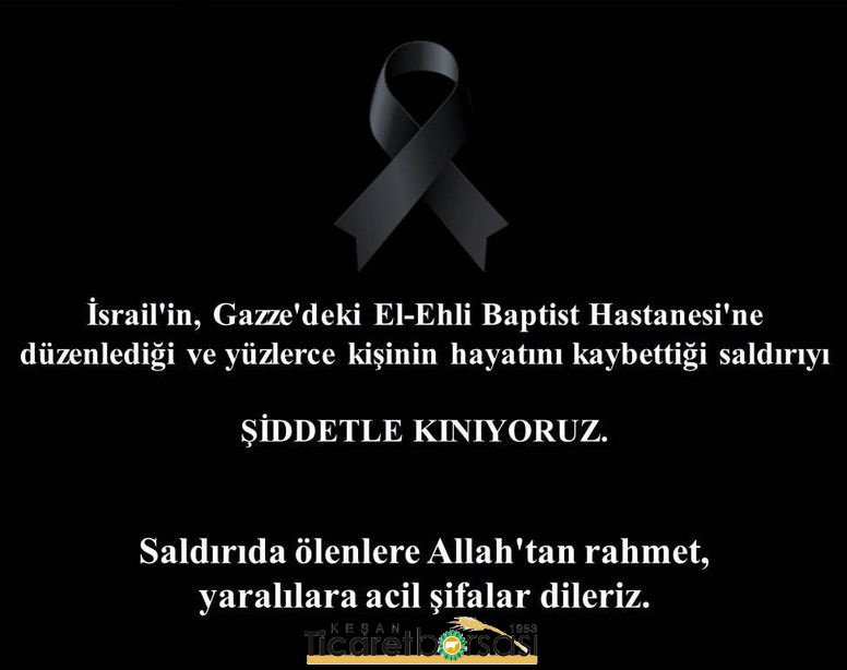 İsrail'in, Gazze'deki El-Ehli Baptist Hastanesine düzenlediği ve yüzlerce kişinin hayatını kaybettiği saldırıyı şiddetle kınıyoruz.