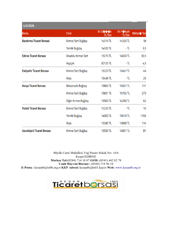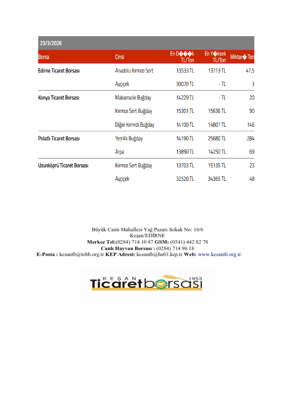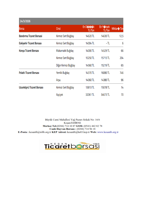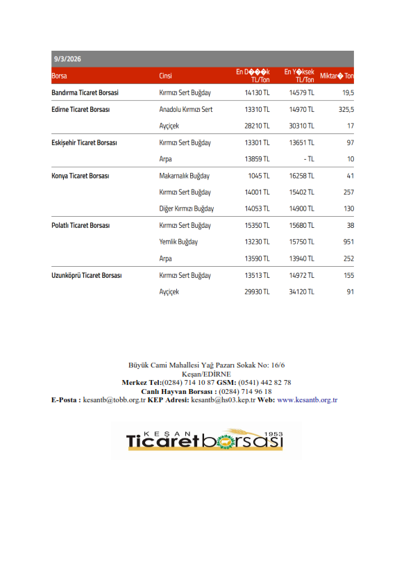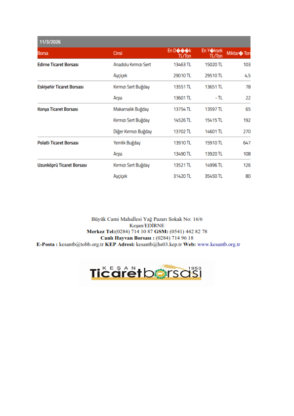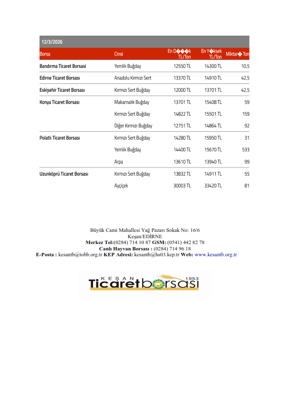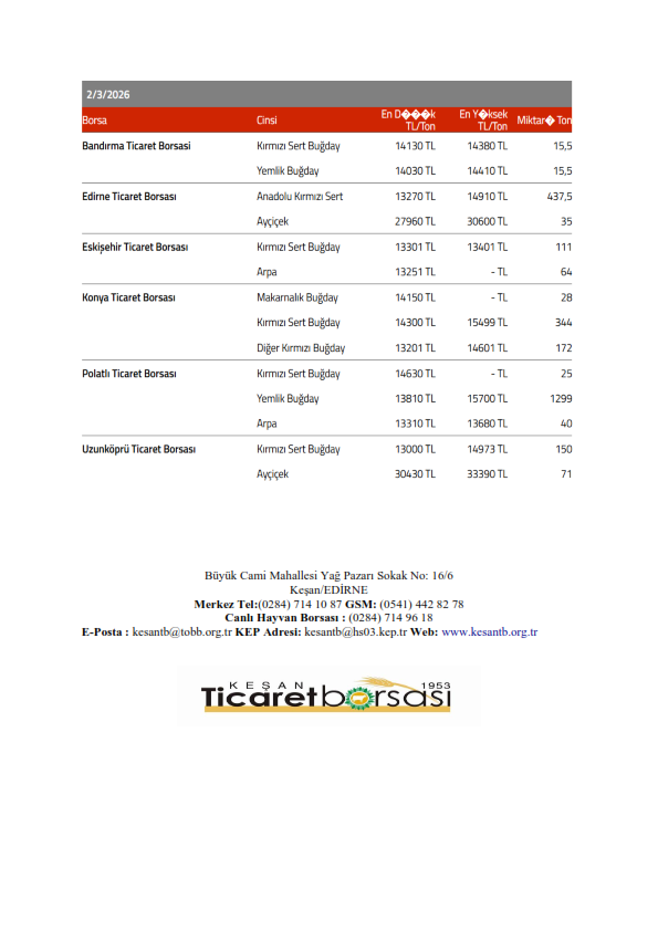 Sağlıklı ve bol bereketli haftalar dileriz. Keşan Ticaret Borsası Meclisi