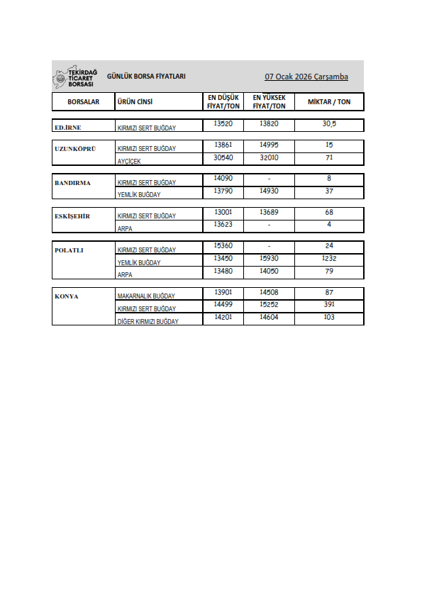 Sağlıklı ve bol bereketli haftalar dileriz. Keşan Ticaret Borsası Meclisi