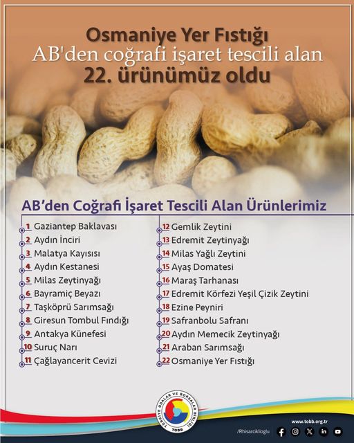 Osmaniye Yer Fıstığı Avrupa Birliği’nden coğrafi işaret tescili alan 22. ürünümüz oldu.