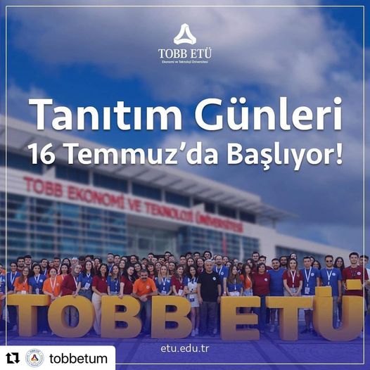 Tanıtım Günlerimiz 16 Temmuz’da başlıyor! 16 Temmuz’dan itibaren yerleşkemizi ziyaret edebilir, YouTube kanalımız üzerinden gerçekleştireceğimiz canlı yayınlar ile TOBB ETÜ’yü daha yakından tanıyabilirsiniz. Tanıtım Günlerinde Seni Bekliyoruz!